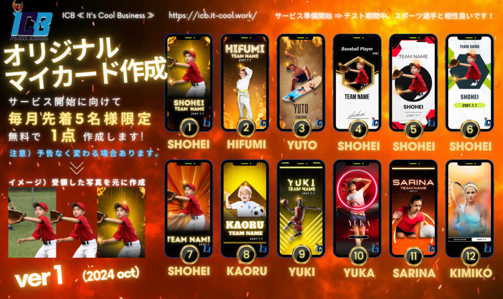 - 人物を切り抜き、選択いただいたデザインパターンから1点、オリジナルマイカード(静止画・動画)を作成します。
